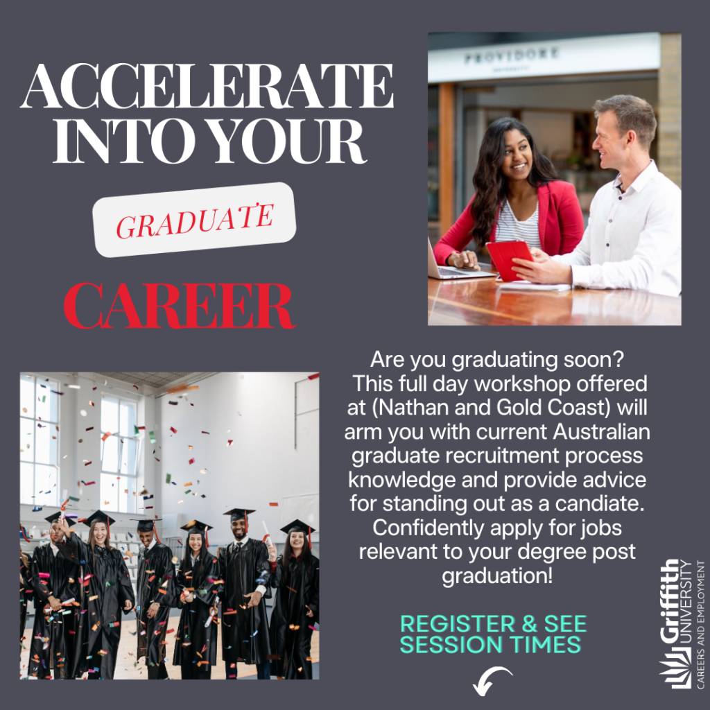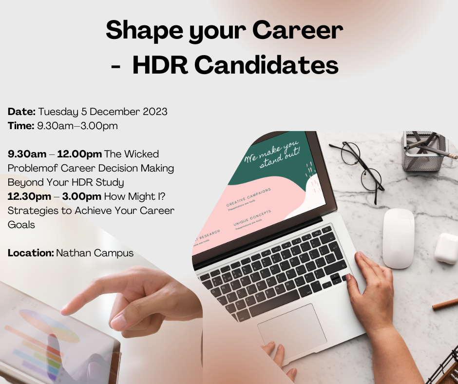Griffith Careers and Employment Service is excited to help you transition from your HDR studies to a fulfilling career relevant to your field and unique skillset. The following activties are designed to help you engage with our service and to inspire you to start thinking about your future career plan.